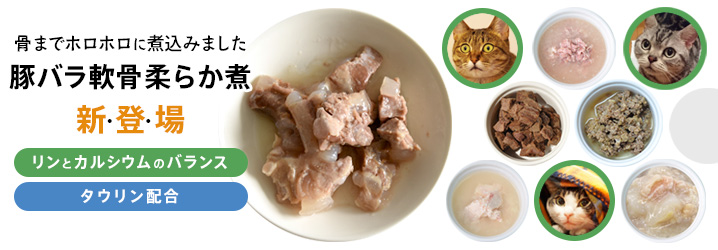 猫にとってとても大切なリンとカルシウムのバランスを(リンが過剰にならないように)調整し、必須栄養素であるタウリンを配合しました。水分補給のサイドメニューや手作り食におすすめです。