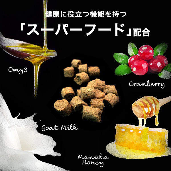もちろん、猫の健康を考え原材料を厳選。健康に役立つ機能を持つスーパーフードなども配合しています。