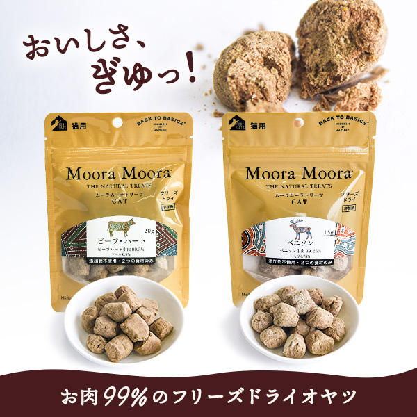 「ムーラムーラ」から新登場したのは、《牛》と《鹿》の生肉を使ったフリーズドライオヤツ。