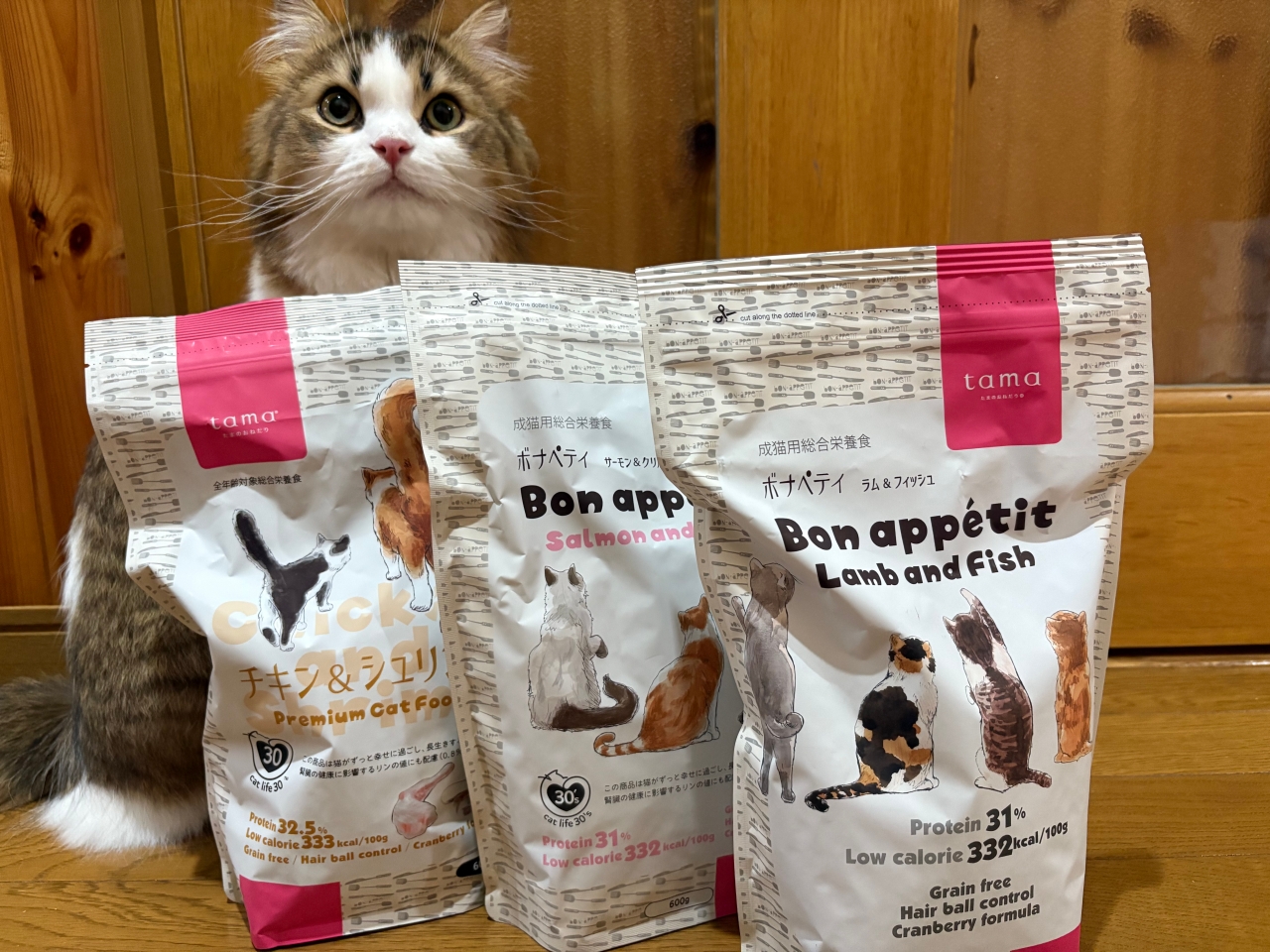 最初は良くてもすぐに飽きてしまい食べなくなる傾向があり、本当に何を与えたらよいのか迷っていた時にTamaのおねだりを知り、商品数が多いので、私としても選ぶ楽しさもあって、毎回届くのが楽しみになり、特にボナペティ・ラム&フィッシュは食いつきが全く違って、もう1年近くになりますが今も美味しく食べてくれています。いつもありがとうございます。