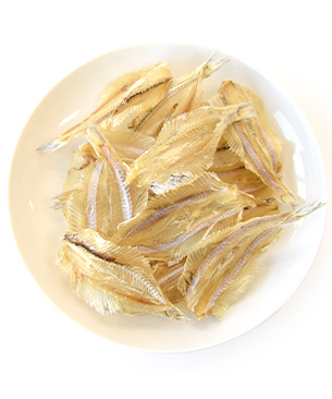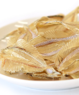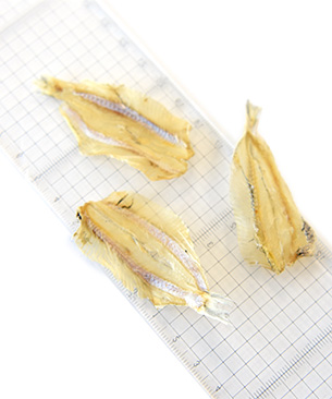片口イワシの仲間「インドアイノコイワシ (通称:白イワシ) 」を丸ごと乾燥させた、パリパリ食感のおやつ。