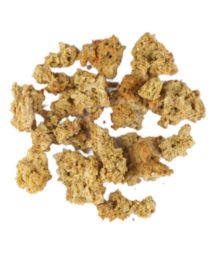 北海道産の秋鮭と日高昆布をスチーム調理後、じっくりと乾燥して作ったサクサク食感のおやつ。そのままオヤツとしても、嗜好性の良さを活かしてフードにトッピングしても。