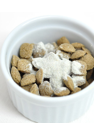 そこでこちらを試してみました。カリカリにまぶして与えてみましたが、最初はクンクン嗅いでちょっと警戒していました。食欲にまけてすぐに食べましたけれども(笑)