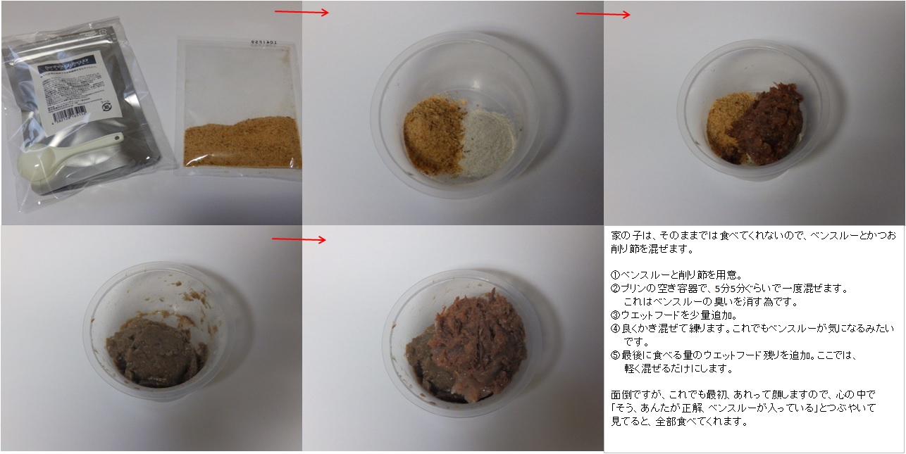 指摘されたため、試しにベンスルーを購入しウェットフードに混ぜてみました。