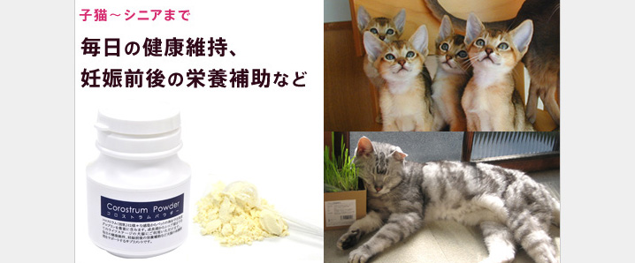 成猫とシニア猫の成長と健康維持のために。健全な免疫力を維持するラクトフェリンとアガリクス菌糸体抽出物(βグルカン)、腸内環境をサポートする乳酸菌EC-12(死菌・エンテロコッカスフェカリス菌)を配合したパウダータイプのサプリメントです。関節の健康をサポートするために必要なグルコサミン、コンドロイチン、ヒアルロン酸を配合。