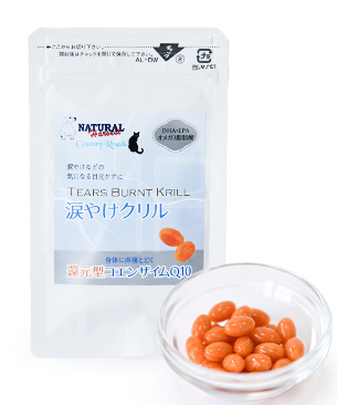 目元の健康をサポートするサプリメント。吸収されやすい還元型コエンザイムQ10と、クリルオイルの相乗効果で目元すっきり。カプセルが苦手な場合、カプセルごとお湯に溶かし冷ましてから与えることもできます。