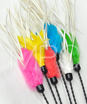 フェザーパウンザーはフワッと柔らかい羽根の中に、長い固めの羽根が入っていてパタパタと本当に鳥が飛んでいるような音がします。遠くからでも良く反応します。