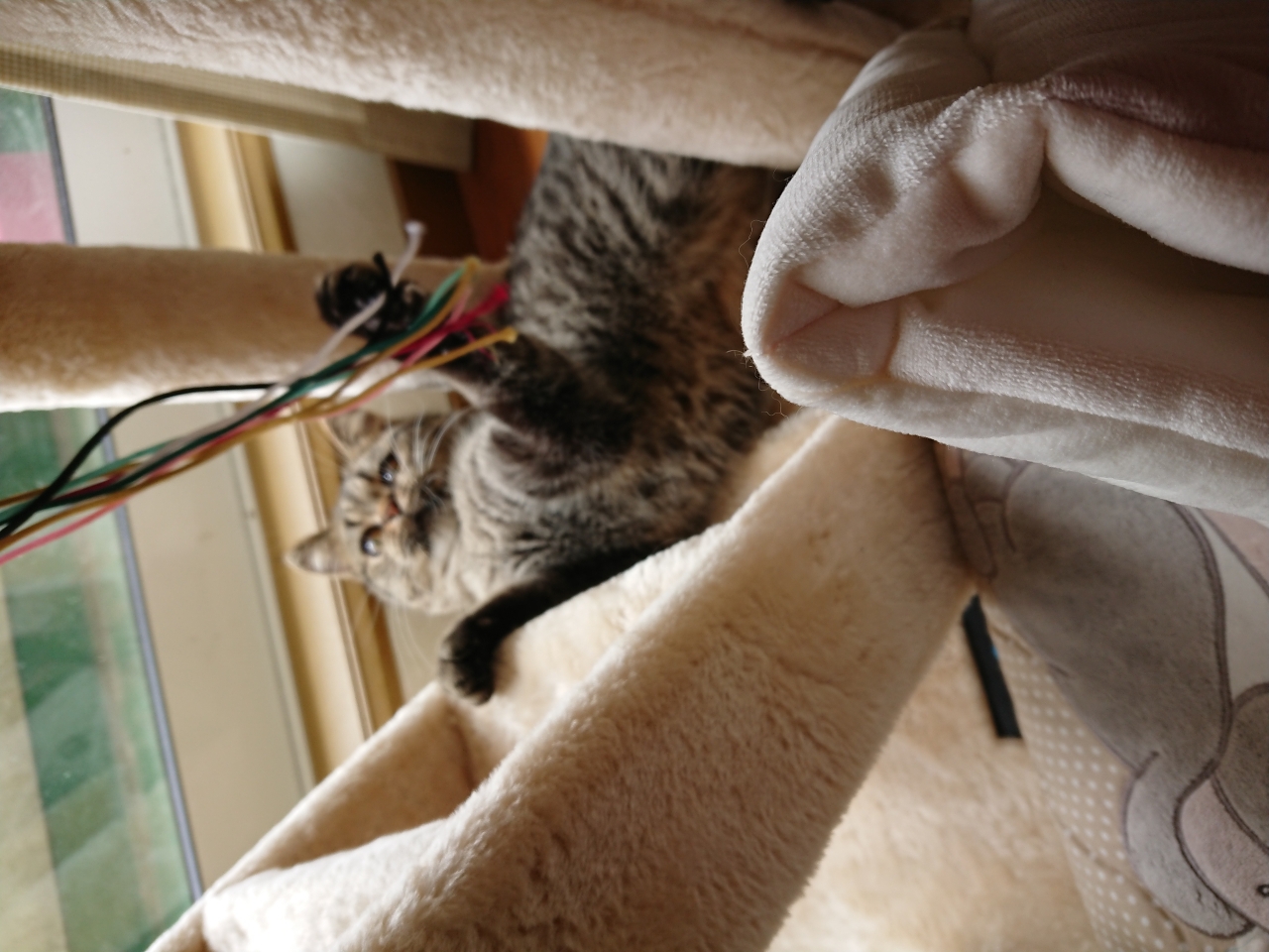 サテンバウンザーは紐が大好きな猫にはたまらないおもちゃ。