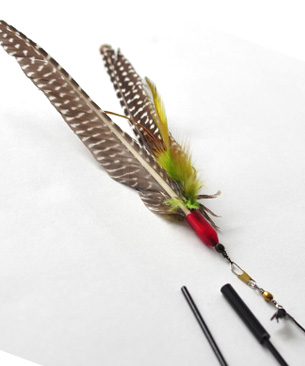 どんな猫でもこれで遊んでくれるのでは?というくらい、みんな食いつきが凄いです。前は激しい色のものしか販売してませんでしたが、壊れたのを機にナチュラルカラーのものに変えました。当たり前ですが色によって食いつきの違いはありません。興奮して猫が咥えたりするのでナチュラルカラーのほうが安心かな?と思います。高速で動かした際のヒュンッという音が本物の鳥に似てるのか、ハチャメチャに興奮して遊んでくれます。