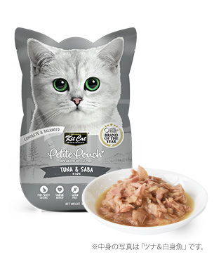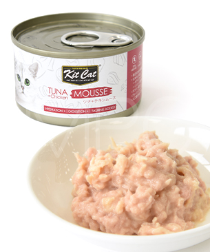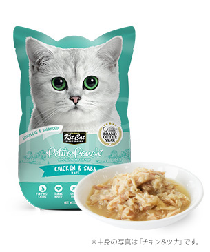 チキンムースにツナをトッピングしたウェットフード。舐めとって食べる子でも食べやすい、なめらか食感のムースタイプ。成猫はもちろん、子猫やシニア猫にもおすすめ。