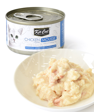 ツナムースに鶏肉をトッピングしたウェットフード。舐めとって食べる子でも食べやすい、ムースタイプ。なめらか食感で柔らかいので、成猫はもちろん、子猫やシニア猫にもおすすめ。