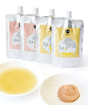 食べやすい小さめのカツオのミートボールに、うまみたっぷりのスープを合わせたウェットフード。ごろっとした肉感を楽しみつつ、美味しく水分補給もできます。リンとカルシウムのバランスを調整し、不足しがちな亜鉛とタウリンを配合しました。