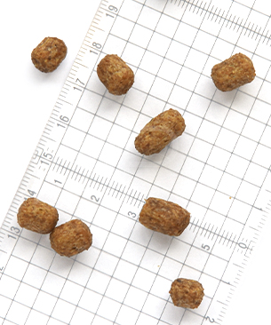 ・体重4.5kgの成猫で1日2回、1回あたり8粒程度が目安です。摂取カロリーが過剰にならないように主食の給与量を適宜調整してください。