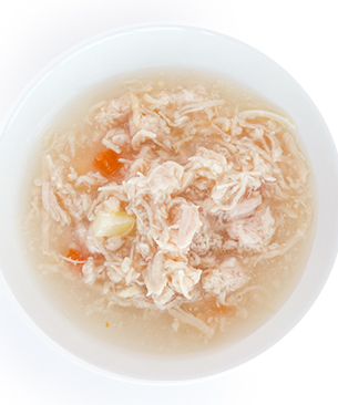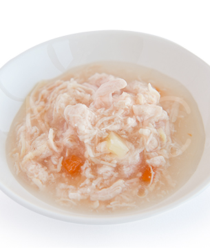 チキンブロス、チキン、ニンジン、ポテト、増粘剤(タピオカスターチ、キサンタンガム)