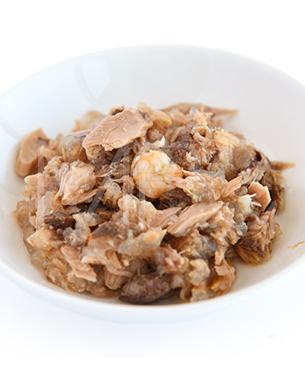 ツナブロス、ツナ、エビ、ゲル化剤(海藻、カシアガム、グアーガム、ローカストビーンガム、塩化カリウム、炭酸塩)