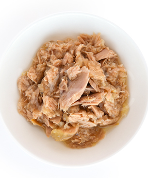 ホワイトツナのほぐし身に栄養豊富なスーパーフードを加え、煮汁と共に柔らかゼリーでまとめています。