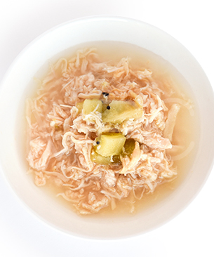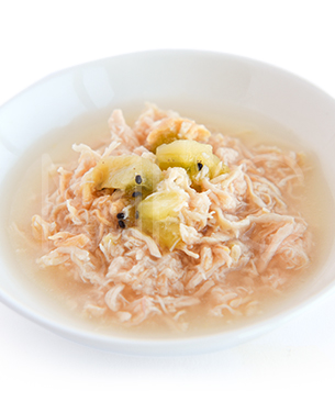 チキンブロス、チキン、キウイ、増粘剤(タピオカスターチ、キサンタンガム)