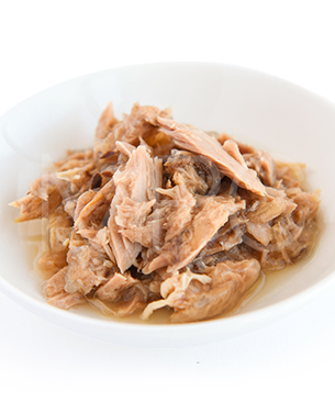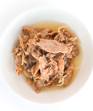 「ツナ&チキン スキンコート」にはツナオイル、フィッシュコラーゲンが含まれ、皮膚や被毛の健康をサポートします。