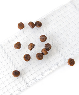 タンパク質 34%以上、脂質 20%以上、粗繊維 2.5%以下、灰分 7.9%以下、水分 10%以下