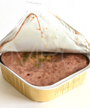 上質でなめらかな肉のパテで野菜(ホウレン草)を包み込んだ2層仕立てのウェットフード。たっぷりの肉と野菜それぞれのおいしさと食感の違いを楽しめます。ドライフードのトッピングにもお使いいただけます。