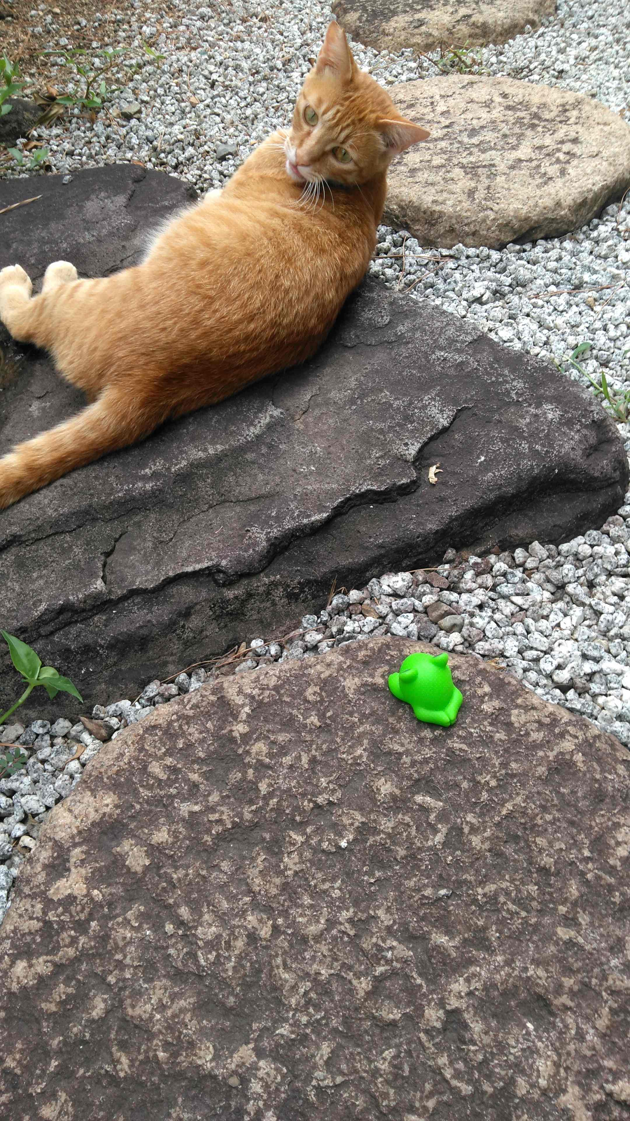 開封すると濃厚な香りが漂っていて、「ニャー!ニャー!」とすりよってきて「早くちょーだい!」と催促されました。硬めが心配だたので小さく砕いてウェットフードの中に混ぜて与えました。すごく気に入っておもいっきり噛みしめて味わって食べている様子でした。食後は満足して、プレゼントにいただいたかえるちゃんと一緒にく仲良くくつろいでいました。