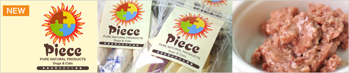Piece(ピース)は、冷凍フード《BONE》の製造会社「バーフジャパン」が、常温保存ができるよう立ち上げた姉妹ブランド。おやつやレトルトをラインナップしています。