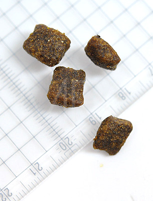 1.ビーフ(生) 2.ドライドビーフ 3.ドライドチキン 4.コーン 5.玄米 |