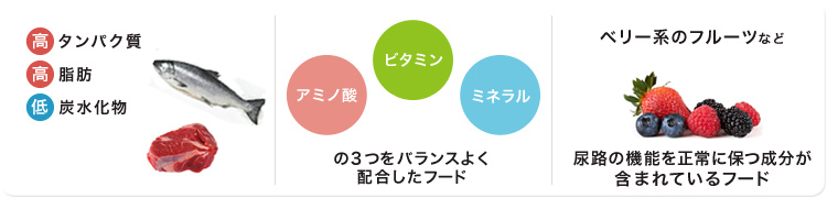 • 泌尿器系の疾患が出やすいので、対策されたフードを。