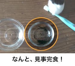 なんと、ムーちゃん!「クロロバイトパウダーサプリメント」をそのまま、ダイレクトにペロペロ、と!