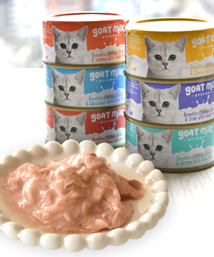 これまでのゼリー仕立てとは異なり、ゴートミルク(ヤギミルク)を加えとろみタイプに仕上げています。とろみタイプだから、さらに水をプラスしても全体的に旨味が混ざりやすく、猫たちの水分補給に役立ちます。