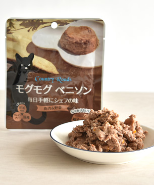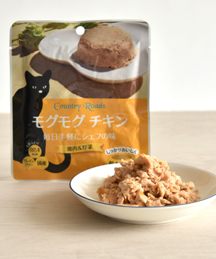 新商品の「モグモグシリーズ」たっぷりのお肉と3種類の野菜を使い、猫専門のシェフが特別に作ってくれたご飯を毎日味わえるような仕上がりになっています。
