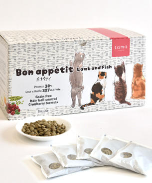 お待たせいたしました!ついに発売開始となった、tamaの完全オリジナルキャットフード!tama ボナペティ ラム&フィッシュ。