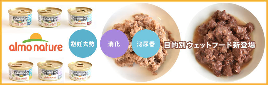 アルモネイチャー から目的別ウェットフード(避妊去勢・消化・泌尿器)新登場