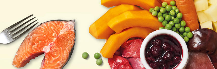 新鮮、または冷凍された状態の肉(魚)、ヘルシーな果物と野菜、ハーブ、ビタミン、ミネラルをたっぷり含んでいます。