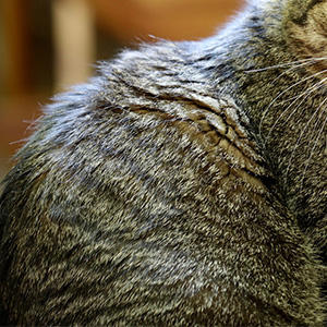 毛割れが起こっている時、猫の皮膚にトラブルが起こっている可能性もあります。皮脂の分泌に異常が起こることで、皮膚や被毛をべたつかせて毛割れに繋がっていることも。