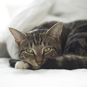 A:猫の食物アレルギーでは、皮膚などのかゆみ、脱毛、下痢や軟便が比較的よくみられるケースです。
