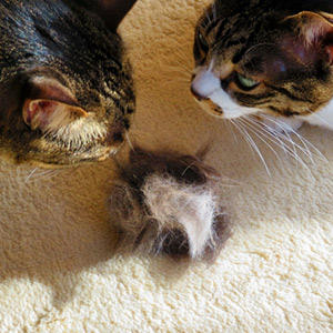 換毛期に入った猫たちは、抜け毛の量が多くなります。猫たち自身はキレイ好きなので自分の体を舐めて抜けた毛を取り除く、グルーミングを行いますが、その際に抜け毛を飲み込みます。