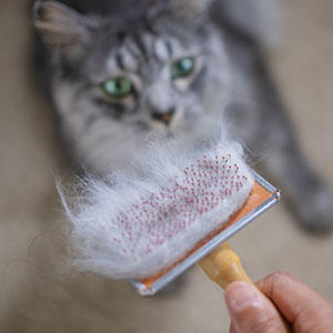猫は自分でグルーミングを行い、体を清潔に保つ習性がありますが、換毛期などではそれでも間に合わないほどの毛が抜けます。抜け毛をそのままにしておくと湿気がこもったり雑菌が繁殖したりして、皮膚トラブルの原因に。