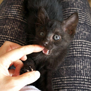 口周りをなでることに慣れてきたら、口の横側からそっと指を入れ、奥歯や歯茎に触れてみましょう。