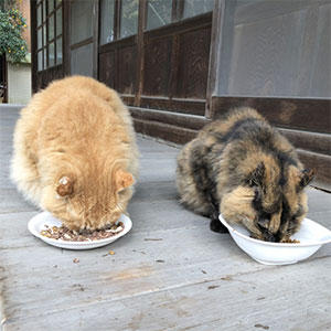 食事量についてはキャットフードのパッケージにかかれている量を目安とし、猫の成長具合によって加減してください。