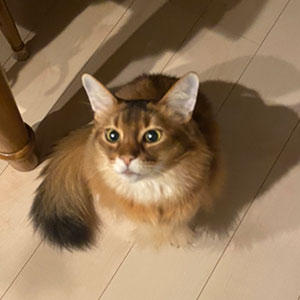 お魚系フードが大好き。丸のみ癖があり、小粒すぎるフードだと一気に食べて吐き戻すことも。膀胱炎になりやすい体質です。
