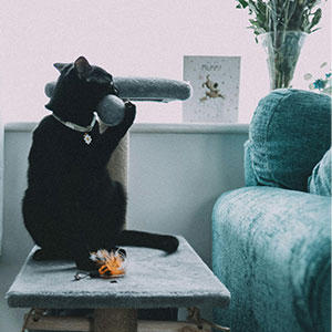猫の狩りの場面を再現するように物陰におもちゃを隠れさせたり、捕まりそうになったら飛び上がるなどの動きを取り入れると、猫はもっと遊びに夢中になってくれます。