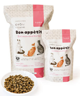 ドライフードはボナペティをずっと愛用させて頂いており、他の2種類のフレーバーをあげていたのですが、新しく登場した「サーモン&クリル」も買わずにはいられませんでした。開けたら魚の芳醇な香りがして、猫ちゃんの食いつきも本当に良いです。ボナペティの低カロリー・低脂質・グレインフリーなどの良さは残しつつ、お肉とはまた違ったサーモンとクリルならではの栄養素があることと、ローテーションしてあげることができるのはとても大きなメリットだと感じています。この価格帯で贅沢に生サーモンをメインに使用しているのは本当に凄いです!これからも愛用させて頂きます。
