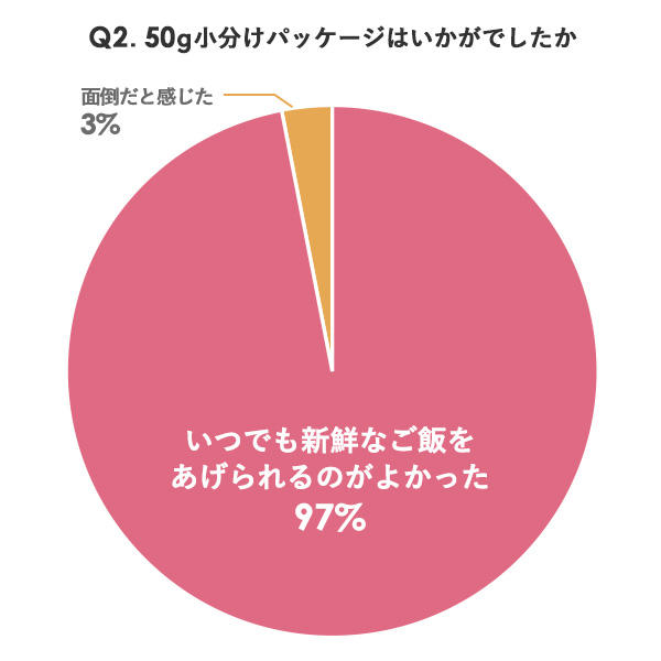 2つ目の質問では、50g小分けパッケージについての感想をうかがいました。