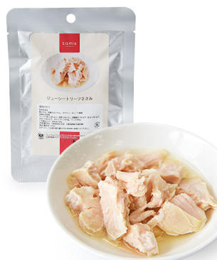 「ジューシートリーツささみ」は、国産の鶏ささみをひと口サイズにカットして、ジューシーに仕上げたレトルトオヤツ。シンプルレシピでささみのおいしさを堪能できることはもちろん、腎臓の健康に影響する《リン》が過剰にならないよう《カルシウム》とのバランスを整え、猫にとって必須の栄養素《タウリン》を配合した、栄養バランスにも優れたオヤツ。