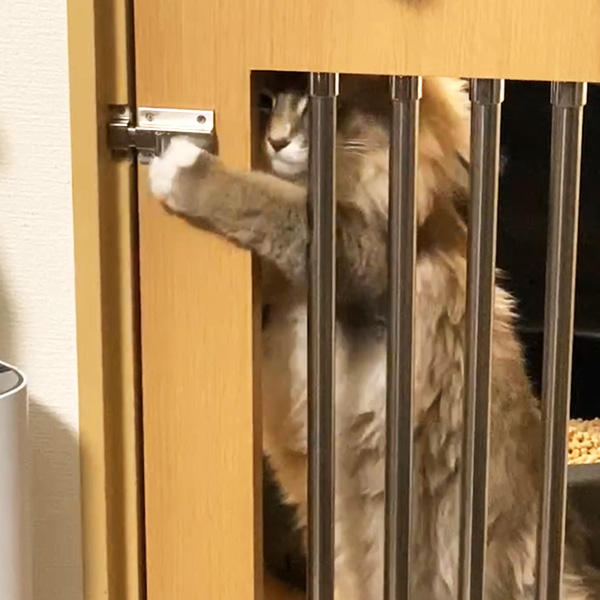 手慣れた様子でケージの鍵を開ける瞬間。これはただモノではありませんね・・・。