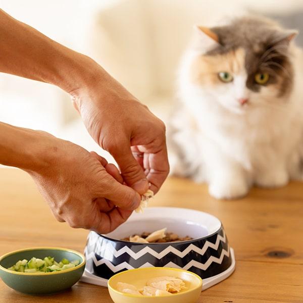 食欲が落ちている場合は、フードの温度や形状を工夫したり、ウェットタイプや、好みの形状で与えることのできるパウダータイプを選ぶなどの対策が有効です。