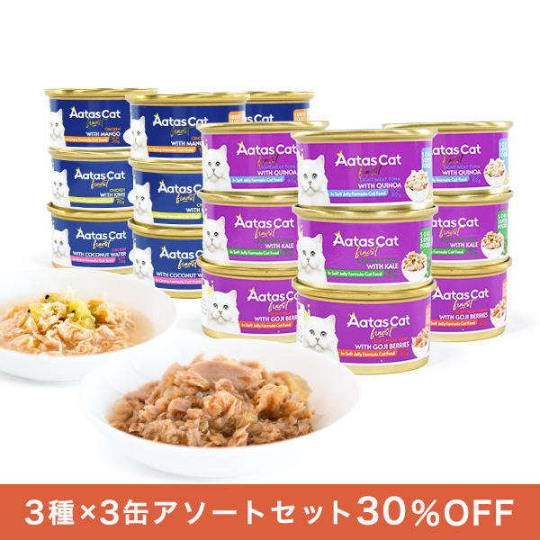 シンガポールを拠点とするブランド「アタス キャット」は、全ての猫が満足する食事を見つけられるように、品質とバラエティにこだわりを持ち、猫の個性に寄り添うウェットフードを多数ラインナップしたブランド。そんな「アタス キャット」の一部商品が【最大30%オフ】となるキャンペーンを開催いたします。