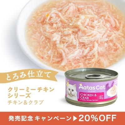 「アタス」から新しく登場したのは、人気の「クリーミーチキン」シリーズから《1種類》、そして「タンタライジングツナ」シリーズから《3種類》。