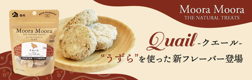 【新商品】「ムーラムーラ」うずらの生肉を使ったフリーズドライオヤツNEW